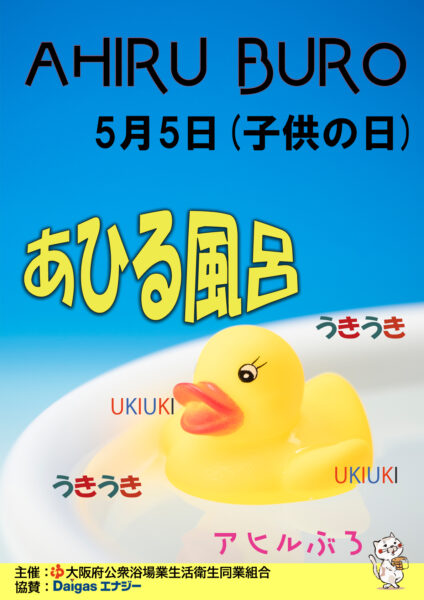 こどもの日に、湯船で大量のアヒルが浮かんだ「アヒル風呂」が出現します。