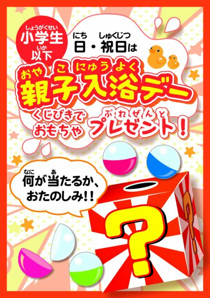 大阪市平野区の松竹温泉では、日曜、祝日は親子入浴デー開催中